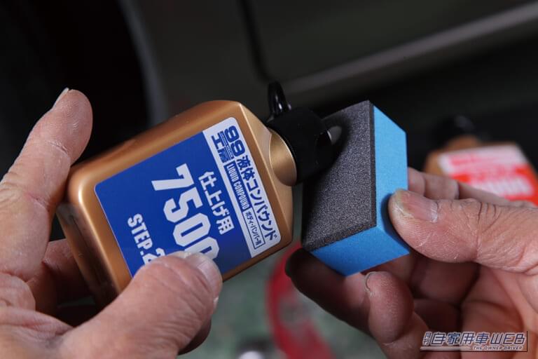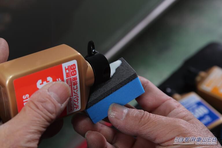 小キズのほとんどは、このクリアコートに付いている。コンパウンド磨きは、このクリアコートの厚さをミクロ単位でコントロールしながら削るため、適切なコンパウンド選びは最も重要な要因となってくる。コンパウンドとは、液状やペースト状の基材に、研磨剤となる微細な粒子が混ぜられたものである。その粒子の大きさ(粒度)が、コンパウンドの性能を決定するのだ。またコンパウンド磨きは、「極細粒度のものから段階的に使用し、最終的に超微粒子で仕上げる」という原則となる。粗いコンパウンドだけで磨くと、キズは消えてもそのコンパウンドによる深い「磨き傷」が残ってしまうので、超微粒子での仕上げ必須である。