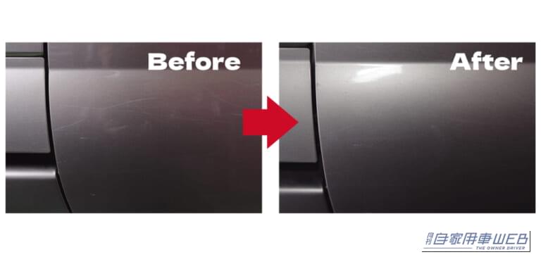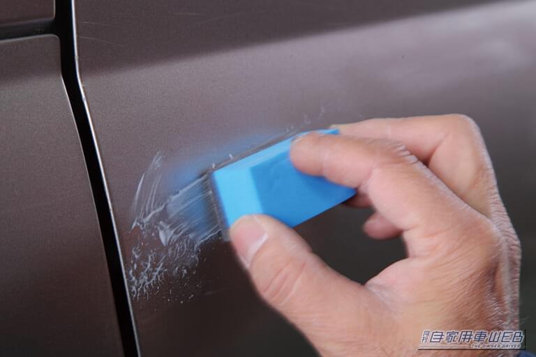 小キズ(浅いキズ)のほとんどは、塗装面の最も外側にあるクリアコートに着いたもの。コンパウンド磨きは、このクリアコート層をミクロ単位でコントロールしながら削り、傷の最も深い部分に合わせて周囲を削り落とすことで、傷を「見えなくする」のではなく「キズの深さに合わせて平坦にする」処置法なのだ。ボディの塗装を削ると聞いて不安を覚えるユーザーいるかと思うが、ここで使用する極細もしくは超極細(メーカーによっては微粒子)のコンパウンドでは塗装を多少磨いた程度では、塗装に悪影響が出るとは考えなくても大丈夫。とはいえ、磨き過ぎは厳禁であることは言うまでもない。
