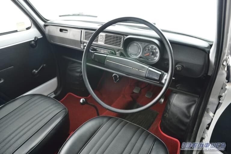 シンプルなインパネ周りだが、スバル360に比べて、よりクルマらしいメーター配置となっている。