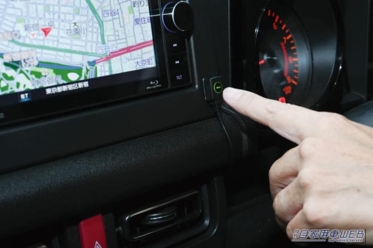 画面表示の切り替えは、付属のスイッチで可能。別売りで5インチモニター(価格:1万4080円)も用意されるほか、ジムニーの内装にあわせた取り付けアタッチメントも開発中とのこと。