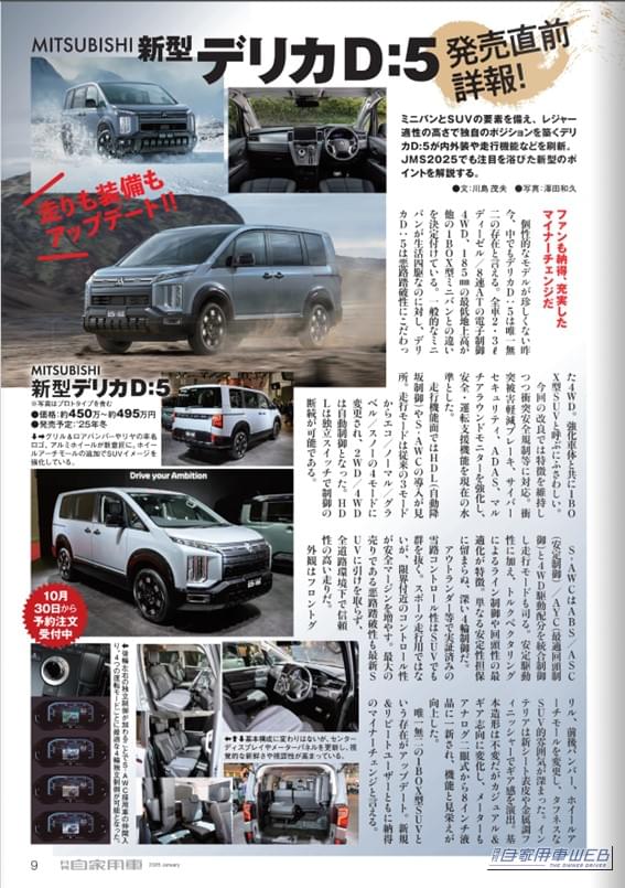 【月刊自家用車1月号発売】新型ランドクルーザーFJ先取りチェック/最終進化系デリカD:5の魅力/新型デリカミニ試乗/新型ヴェゼル試乗/JMS2025注目モデル深掘り研究/全国新車値引き生情報etc.