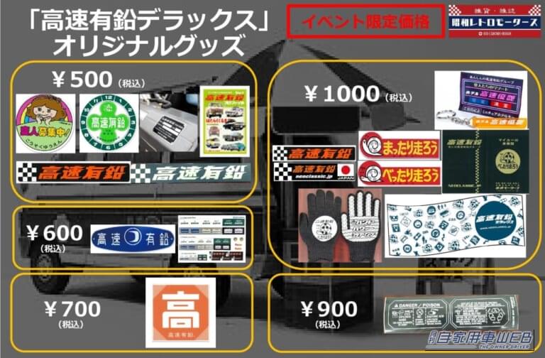 クルマ好きにはおなじみの「高速有鉛」オリジナルアイテムもラインナップ。