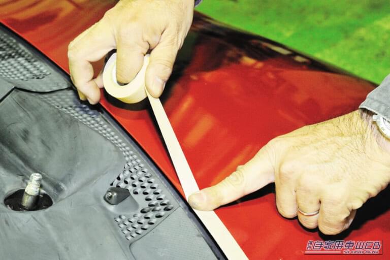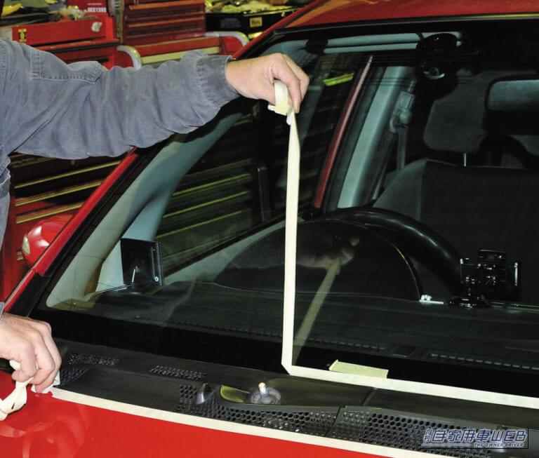 マスキングテープを貼ってワイパーブレードの格納位置をマークしておくと、再び装着するときに装着角度で迷わない。