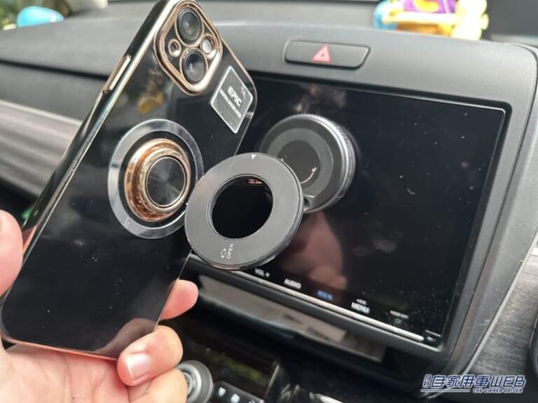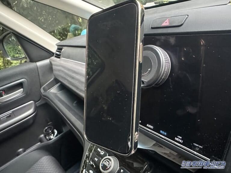 取り外しもスムーズで、手前に軽く引けば簡単に外れる。片手での着脱ができるため、停車中の操作もストレスがない。頻繁にスマホを使う人ほど便利さを実感できそうだ。