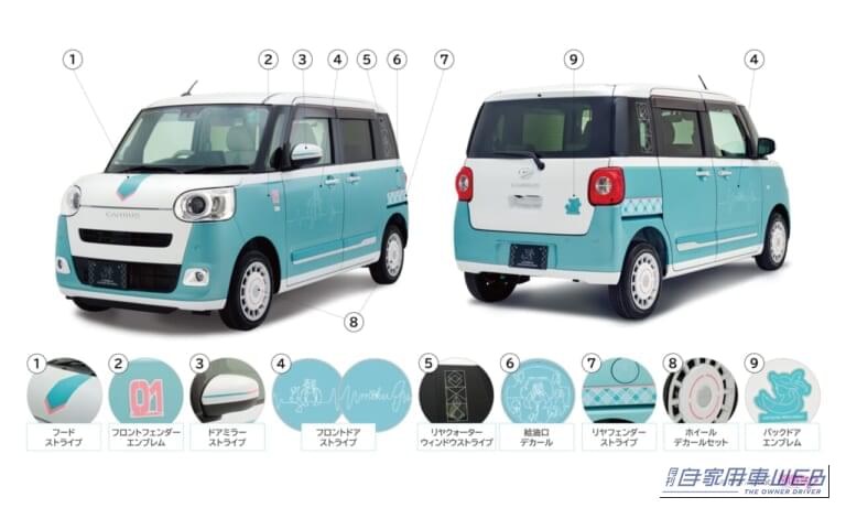 今ライナップされるアイテムは、外装アイテム:全9種類/内装アイテム:全5種類となっており、販売は、全国のダイハツ販売会社およびAmazonサイトにて展開する予定だ。装着可能車両は、ダイハツ ムーヴ キャンバス(LA850/860S型)のGターボ、Gグレードとなる。