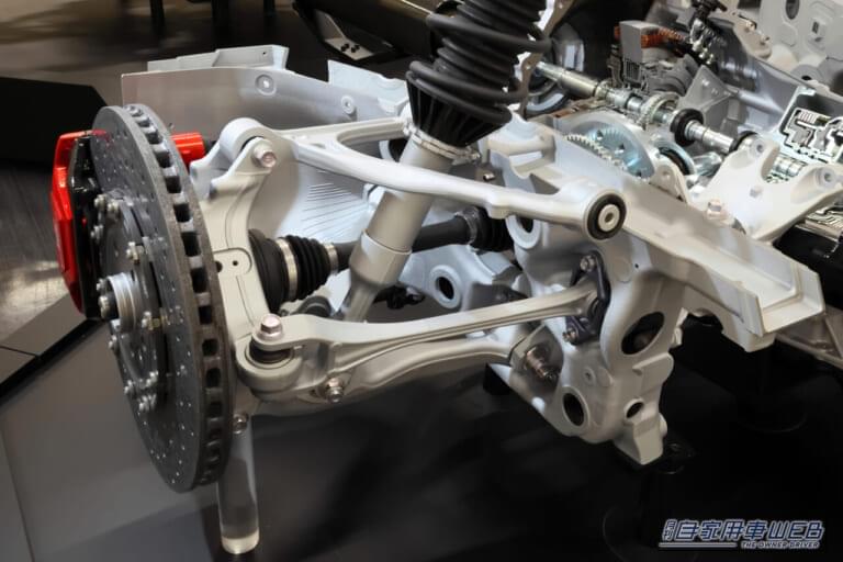 サスペンションは前後新設計のローマウントダブルウィッシュボーン式(アルミ鍛造アーム)で、日常から限界域までリニアなレスポンスとコントロール性を追求。