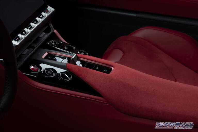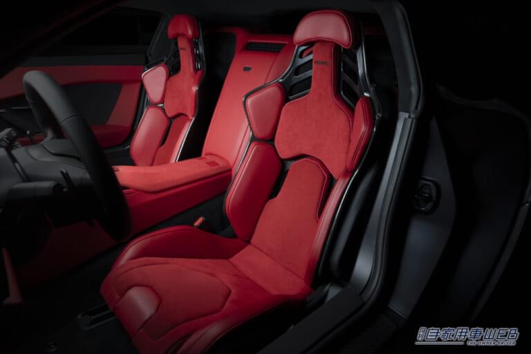 インテリアは、プロドライバー、ジェントルマンドライバーがサーキットユースとデイリーユースを両立できる最適なデザインを目指し、ドライビングポジションと視界を最重視。理想的なポジションを追求する中で「守られ感」を再認識し、ドライビングに関わるスイッチ類をステアリング付近に配置するなど、直感的で操作しやすい形状・位置にこだわっている。