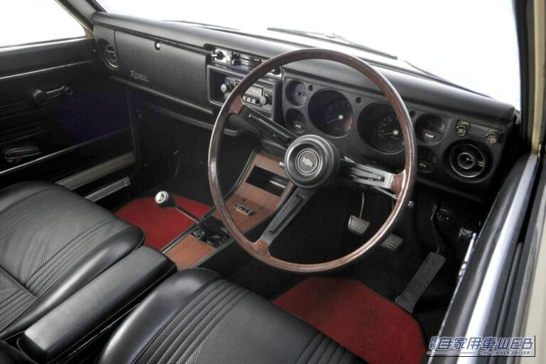 車体デザインと同様に、インパネも直線基調で非常にシンプル。これは当時の欧米のトレンドを取り入れたもので、視認性と操作性を重視したもの。SSSに設定された3本スポークステアリングは、ウッドリムのコーンタイプを採用。
