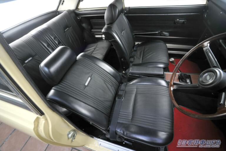 1970年式の2ドアクーペ1600SSS。丸形独立メーターが採用されるスポーティーモデル。グローブボックスはマップランプ付きで、開けるとトレイにもなった。シートは黒のビニールレザー。