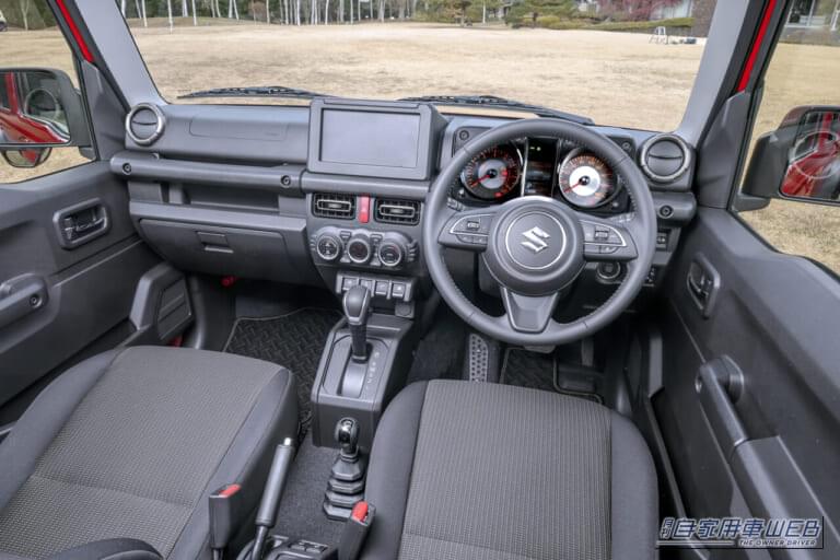 中央に2DINスペースを配置するシンプルなレイアウトや操作感に優れるスイッチ類の配置など、ジムニーシリーズに共通する優れた機能性は引き続き踏襲。