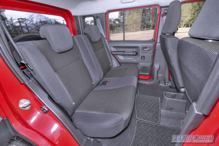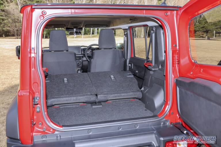 ジムニーノマドの最大の魅力は、ジムニーの本格的な悪路走破性をそのままに5ドア化で実用性と居住性を劇的に高めた点にあり、3ドアのジムニー/ジムニーシエラと比較して、後席の足元空間と荷室(ラゲッジ)スペースが格段に広がり乗降性も向上している。「ジムニーは好きだが3ドアは不便」と感じていたユーザーニーズに、完璧に応えたことが人気を集めている理由だ。
