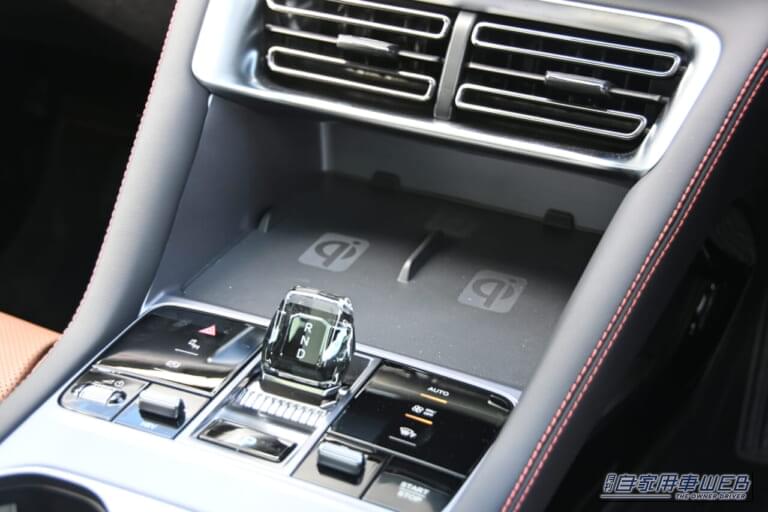 バー形状のシフトレバーの周囲には、ドライブ機能をサポートする物理スイッチが配置される。直感的な操作感を重視したレイアウト。