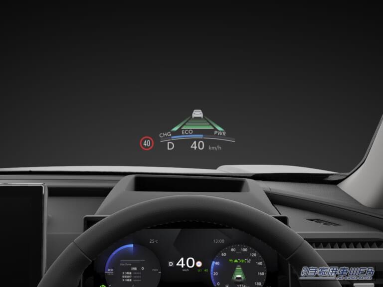 カラーヘッドアップディスプレイは、遠近感を活かした表示が可能な最新タイプ。
