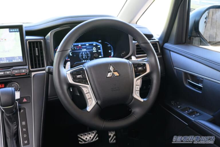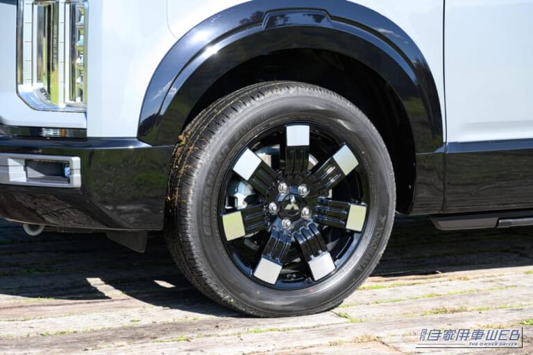 エクステリアは、フロントグリルや前後バンパーをシンプルかつ立体感のある力強い造形へ変更し、リヤゲートの「DELICA」ロゴの配置をガーニッシュ内に見直すことでプレミアム感を高めたほか、新採用のホイールアーチモールや新デザインの18インチアルミホイールを組み合わせることで、ギア感と高い走破性を視認できるデザインに仕上げている。