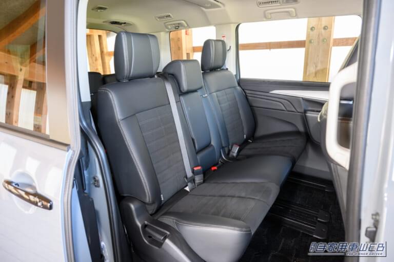 最上級グレードには撥水機能付きのスエード調素材と合成皮革を組み合わせたコンビネーションシートを標準装備し、内装各部にカーキ色のステッチを施すことで、機能性と統一感を追求している。
