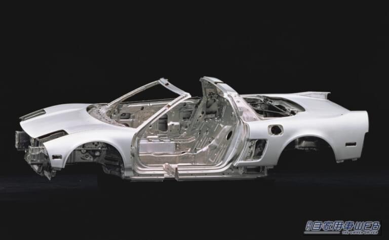 オールアルミボディも運動性だけでなく、安全性や経済性の向上のためにも寄与している。NSXのアルミは溶接性や成型性を考えて独自に開発されたものだという。