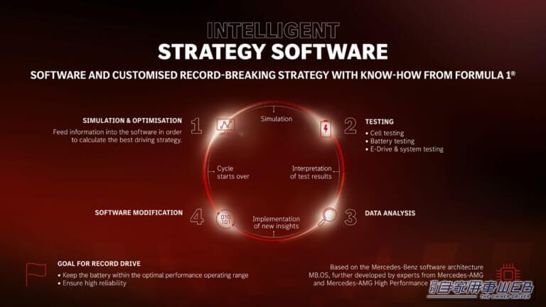 メルセデスAMGは、F1チームの知見を活かし、事前に徹底的なシミュレーションを行っている。興味深いのは、単なる車両データの解析にとどまらず、個々のバッテリーセルの挙動までを「仮想センサー」でモデル化し、実走行データとリアルタイムで比較・修正を行う適応型戦略をとったことだ。