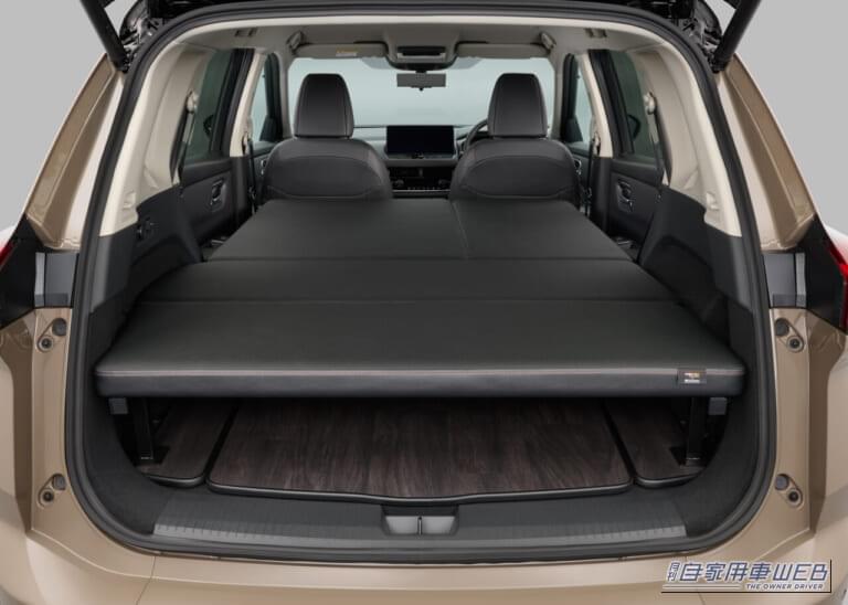 セカンドシートから荷室の端まで広がるベッドシステムを搭載し、ラゲッジスペースが限られたSUVでありながら十分に広い就寝スペースを確保している 。