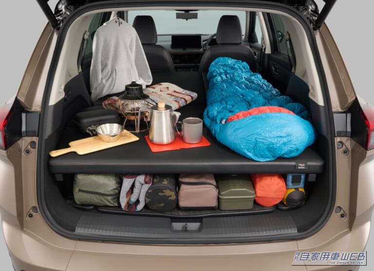 ベッド展開時でもマット下を収納スペースとして活用できるのもポイント。宿泊と大量の荷物積載を同時に叶えており、車中泊ユーザーのニーズに応えている。