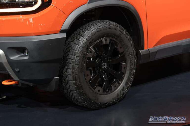 足元には、悪路走破性を高めるオールテレーンタイヤを装着。タイヤサイズは275/60R18。