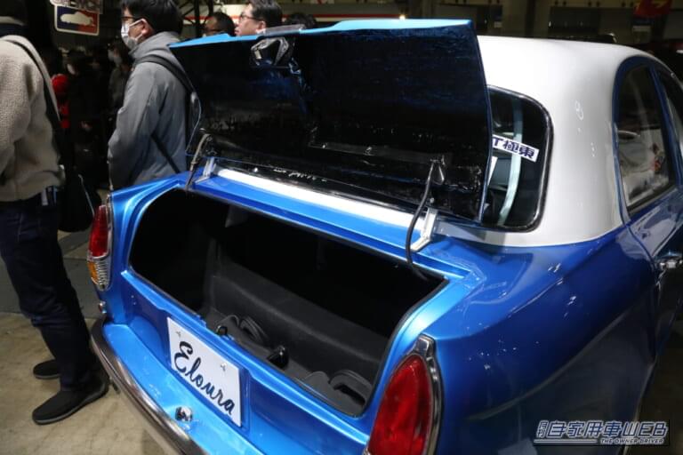 日産京都自動車学校の自動車整備・カスタマイズ科の4年生が携わったもので、車名のElouraは英語で「時代」を意味する「Era」とイタリア語で輝きを意味する「Luce」をかけ合わせた造語。「過去から未来へ時代を超えて輝く一台にする」という想いが込められているという。