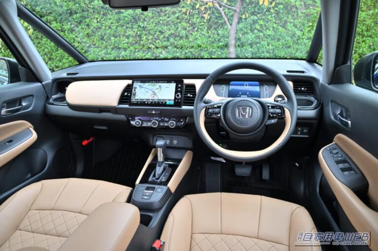 日常の使い勝手を重視するなら、生活になじむデザインと快適性を備えたe:HEV HOME(240万4600円〜)がベストな選択。エントリーグレードのe:HEV BASIC(220万8800円〜)に比べると価格は約20万円高くなるが、ソフトな質感のインパネなどシート&内装加飾が高まり、ナビ取り付けキットなどの一通りの機能装備がプラスされ、利便性が大幅に向上している。