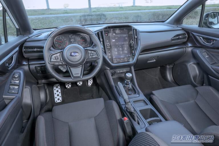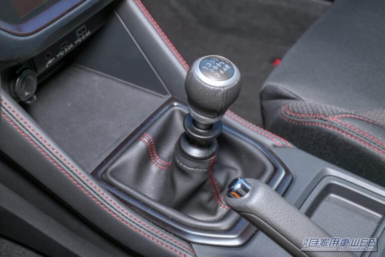 WRXの6速マニュアルトランスミッションは、ビスカスLSD付センターデフ方式のAWDシステムと組み合わされる。ショートストローク化されたトランスミッション本体とクラッチの両方を強化することで、より剛性感が高く、リニアなフィーリングを追求する。