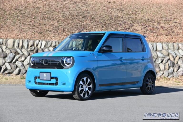 軽EVとなる「N-ONE e:」にホンダアクセスの純正アクセサリー「Sport Style」を装着した車両。前後ホイールが異なるのは、無限のパフォーマンスダンパー装着車との比較試乗のためにタイヤサイズを統一するため。