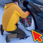 SUVの前輪にオートソックを装着した画像|「これは知っとかないとヤバい…」流行りの布製タイヤチェーンは前輪・後輪どちらに装着する? FF・FR・4WDそれぞれを解説