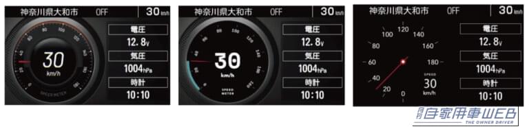 また、準天頂衛星みちびきによる業界初の「災危通報」のリアルタイム表示や、ゼンリンのフルマップによる詳細な市街地ガイド、無線LANを通じたGPSデータの無料自動更新などのほか、現在の走行速度(走行状態)が安全か危険を判断し、場所、時間によって最適な警告動作に変化するインテリジェント安全運転評価機能も搭載する。