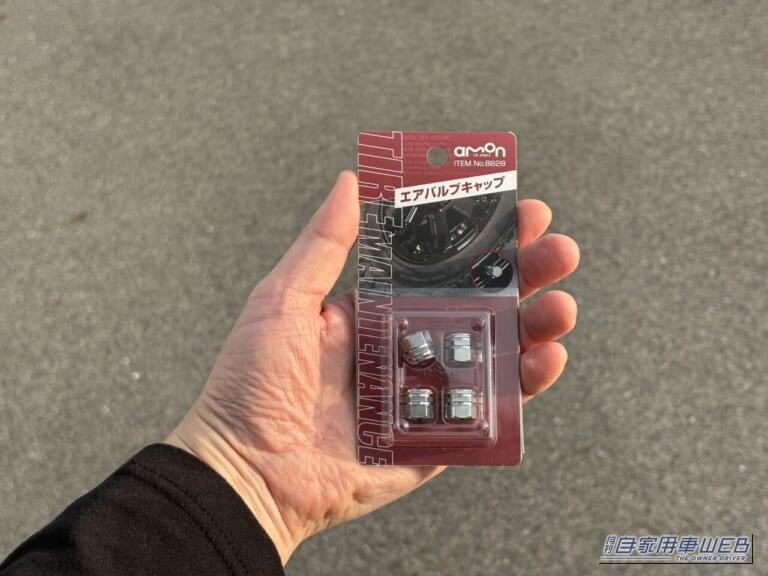 今回は、この製品を実際に購入して、実際に装着してみよう。と言っても、単にバルブのキャップを外して、このエーモンのエアバルブキャップ(8828)に交換するだけなのだが…。