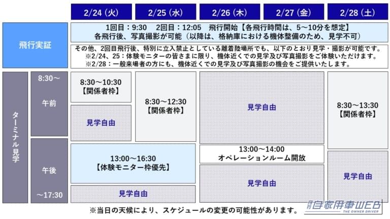 このデモフライトは、事前申し込み不要なので、誰でも自由に見学が可能だ。また、飛行終了後には機体を間近で見られる写真撮影の機会も予定されている。