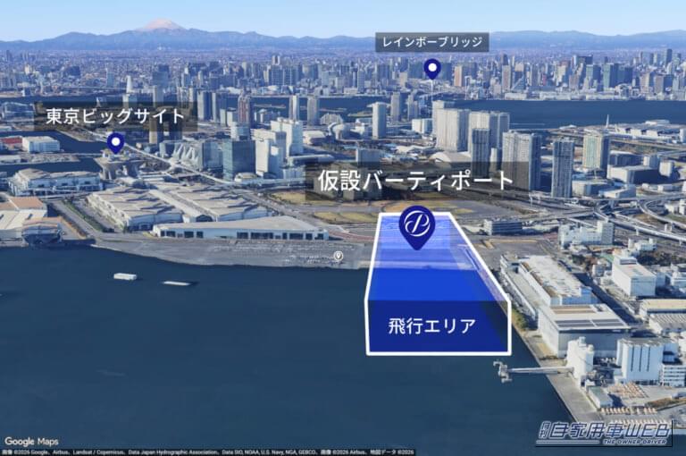 今回のデモフライトが開催されるのは、「東京ビッグサイト」の東棟屋外臨時駐車場。ここを離着陸点とし、会場内や海上を周回する飛行ルートが計画されている。使用される機体は、2025年の大阪・関西万博でも注目を集めた「SKYDRIVE(SD-05型)」。今回のフライトではパイロットは搭乗せず、高度な自動制御とリモート操縦を組み合わせた、安全性に配慮した運行のもと行われる予定だ。
