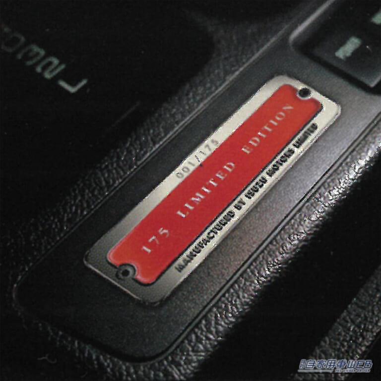 国内販売のファイナルロットとして175台限定で発売された特別仕様車。シリアルナンバー入りのオーナメントをはじめ、ステンレスを使ったグリルガーニッシュ/本革レカロ製シート/専用アルミホイールなどが装着され、販売価格は322万円だった。