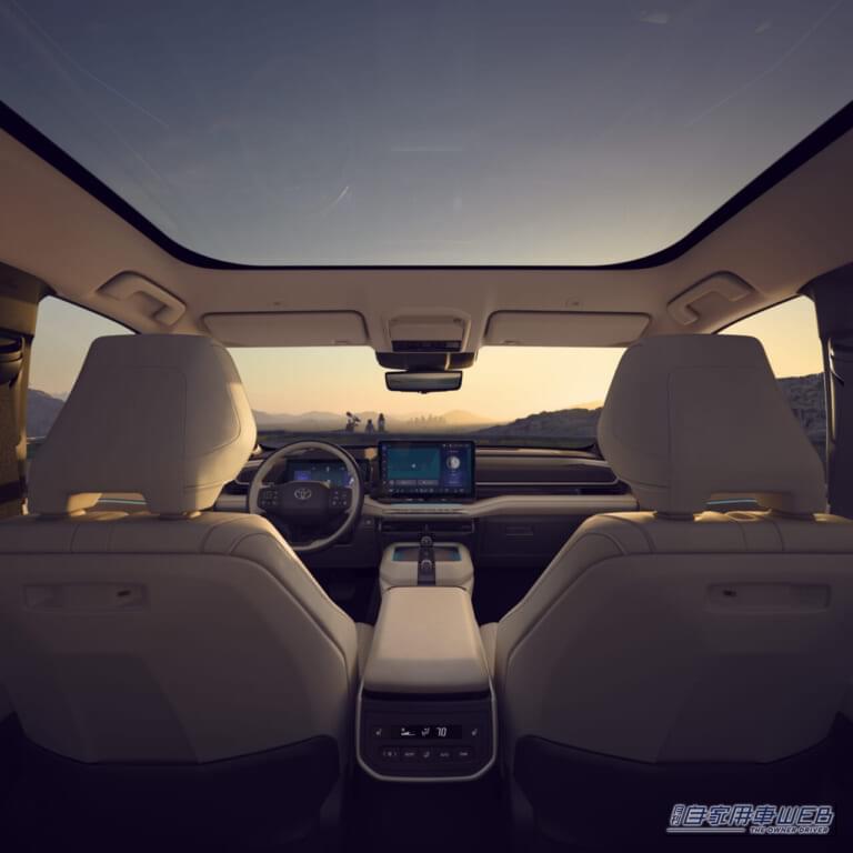 新型ハイランダーのBEVモデルは、トヨタが北米で展開する初の3列シートBEV。全長5メートル超の車体と新開発のプラットフォームの採用により、広大なキャビン空間を実現し、最大7人が乗車可能となる。