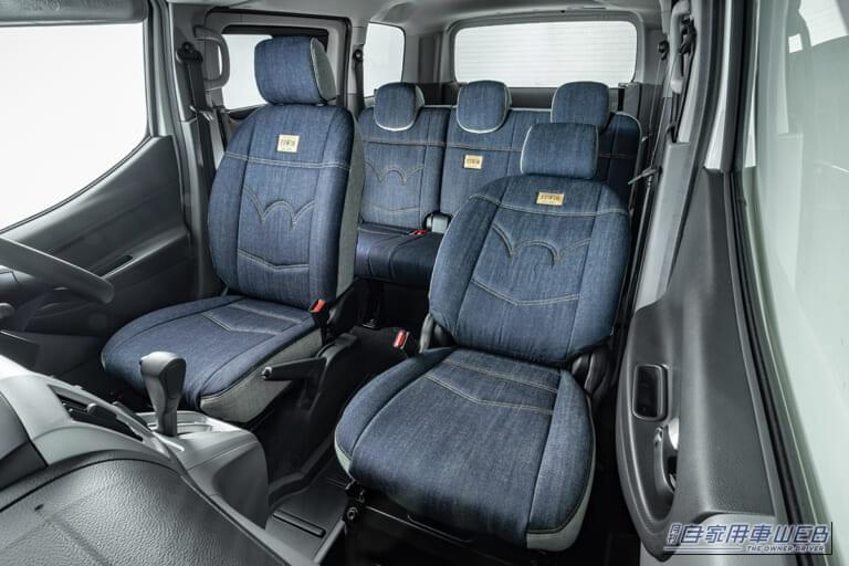 シートカバーはジーンズのディティールを模した遊び心溢れる仕様となっている。