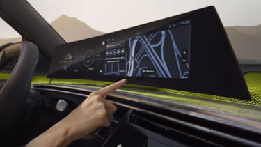 インテリアには、スクリーン表面がドライバーに向けてゆるやかにカーブした21インチのパノラミックカーブドディスプレイを備えた「プジョー パノラミック アイコクピット」を採用。