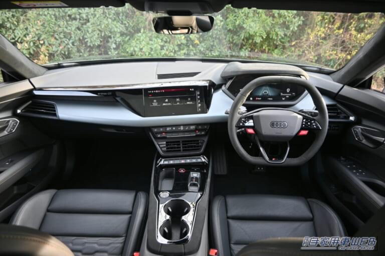 今回試乗したのは、高性能モデルになる「RS e-tron GT performance」(2469万円)で、4輪操舵のオールホイールステアリングやアクティブサスペンション、セラミックブレーキなど、490万円相当のオプションが贅沢に盛り込まれた、正真正銘のアウディ最強仕様であった。
