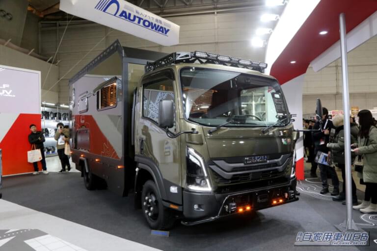 ちなみにいすゞA&Sのブースでは、キャンピングカー専用シャシー「Be-cam」のフルタイム4WD車をベースにしたキャブコンバージョンのキャンピングカーや、プライベートではガレージスペースとして活用できる仕様にした「MUV マルチユーティリティビークル」も出品されていた。