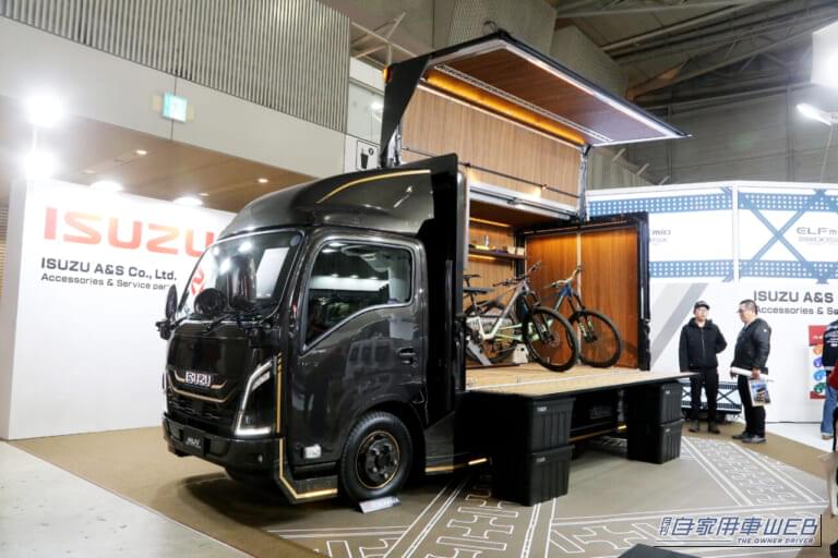 「CROSS STYLE(クロススタイル)」と名付けられたこの車両は、平日など普段は仕事に、休日はキャンプや釣り、バイクやマリンスポーツなど遊びにフル活用できる仕様にカスタマイズされたモデル。今年のオートサロンのいすゞA&Sブースで注目を集めていた、「趣味」をテーマとして製作された小型トラックだ。