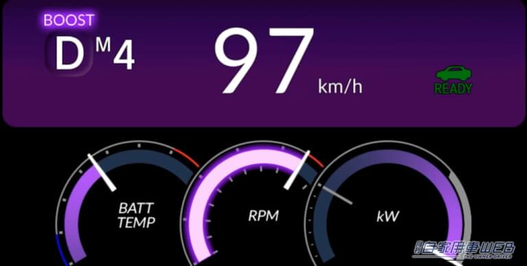 なお、BOOSTモード作動時にはメーターがアナログ風のデジタル表示に切り替わり、インパネのイルミネーションが紫色に変化するなど、視覚的な高揚感も追求されている。