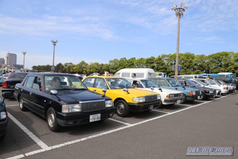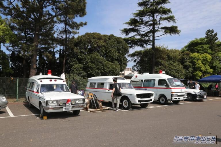 高速有鉛がフリーペーパーだった時代からのテーマ車両「はたらくくるま」を集めた「はたらくくるま大集合エリア」には、タクシーやバス、積載トラック、救急車やレントゲン車、テレビ中継車などさまざまなカテゴリーの特殊車両、それも旧車たちが大集合。