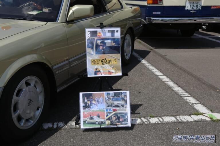 あぶない刑事や西部警察など石原プロ刑事ドラマでお馴染みのレパードやスカイラインジャパンなどの覆面パトカーも登場。ゴールドカラーの31レパードは「もっとあぶない刑事」のプロモーションと6月19日公開予定の映画「免許返納!?」で舘ひろし氏が乗った劇用車だった。