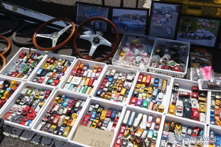 スワップミートエリアも会場のいたるところに設けられ、多くのショップやメーカー、メディアやエンスージアストたちがエントリー。新品パーツやグッズはもちろん、中古パーツやマニア垂涎の当時物などなどさまざまなアイテムがそれぞれのブースに並び、参加者たちの物欲を満たしていた。またケータリングエリアもオープン。ハンバーガーやステーキ丼、唐揚げなどのフード類が販売されていた。