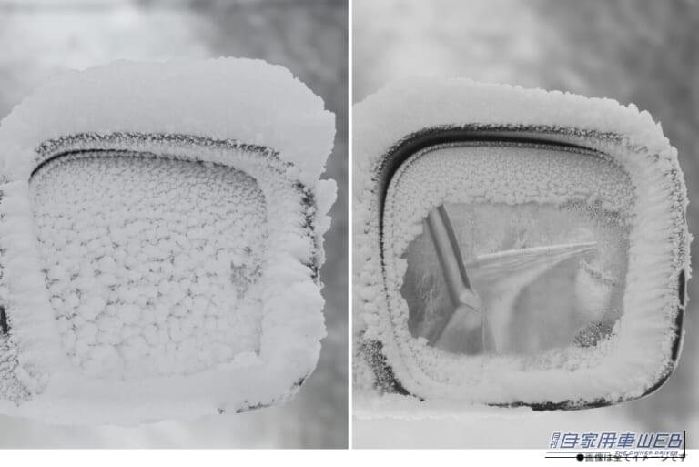 先にも明記したとおり、ゼロワイパーフィルムタイプ サイドミラー用は、フィルムをサイドミラーに貼るだけで作業が完了。水滴がつきにくくなるのはもちろんだが、雪も積もりにくくなるので、冬季の走行でも活躍してくれる。