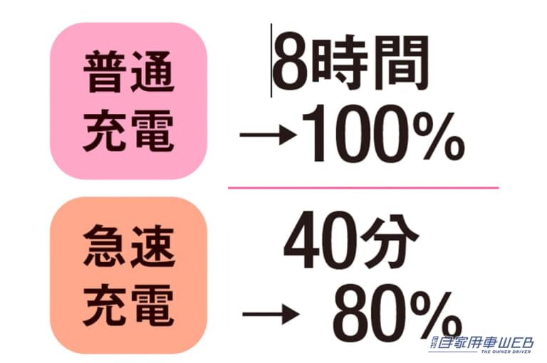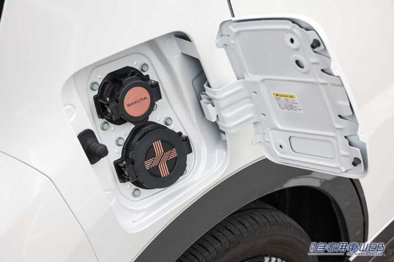 1日の走行距離が30km以下なら、5日に一度自宅で充電すればいいくらいだろう。手間がかからないところが大きな魅力。目安の充電時間は2.9kW 出力の普通充電で約8時間だから、帰宅後から翌朝出発するまでの間でOK。運転席から降りてすぐ充電しやすいよう、充電口も右側に設置されている。わざわざガソリンスタンドに行かなくていいのでストレスフリーだ。
