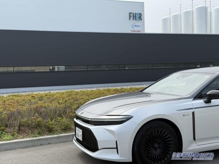 今回の福島取材に使用したのは、クラウン 70周年特別仕様車(FCEV)。燃料電池自動車において世界最高レベル(128kW)の高出力を実現する燃料電池ユニットを搭載。3本の高圧水素タンクを搭載し、ガソリン車並みの航続距離を実現。