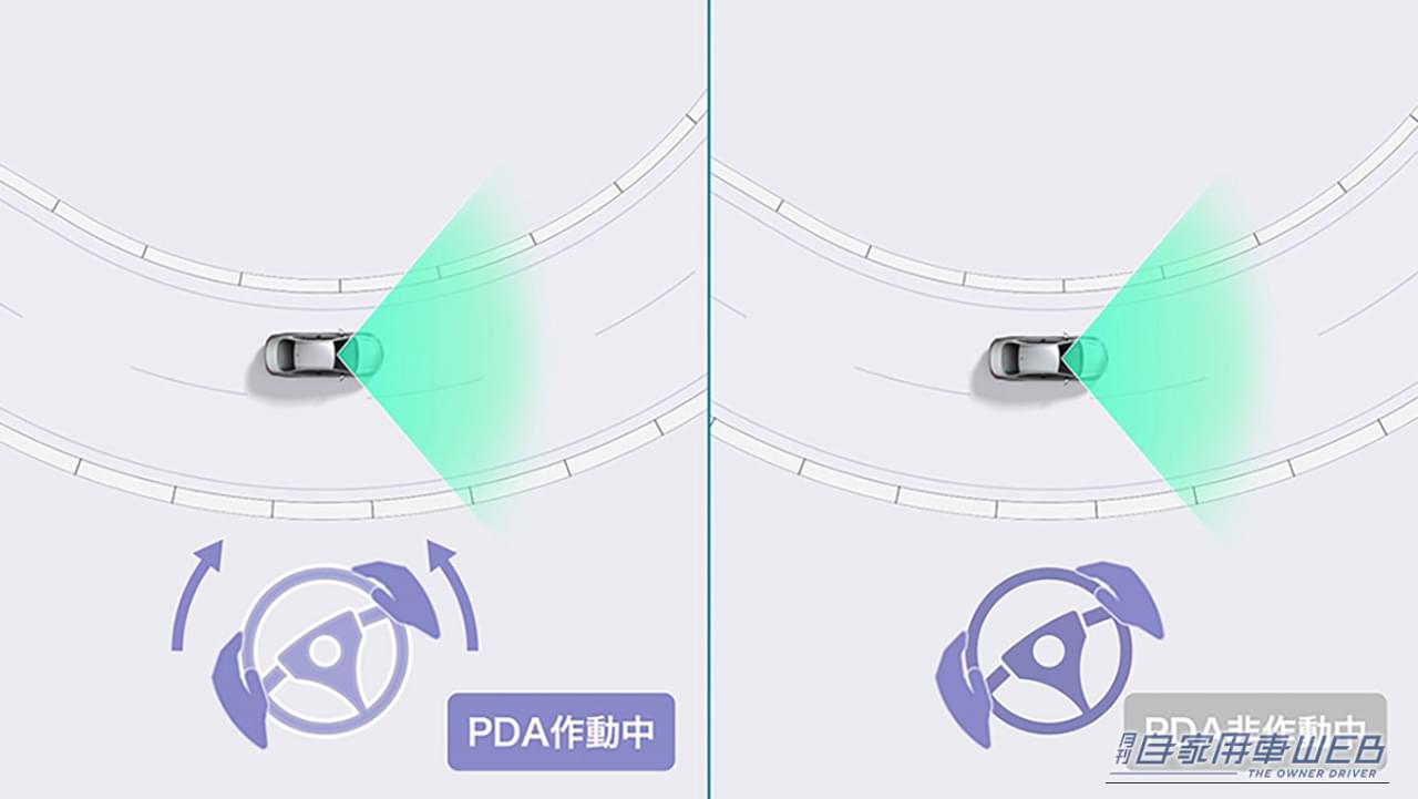 帰り道では、運転操作を先読みしてステアリングをサポートする「常時操舵支援機能」が追加されたPDA(プロアクティブドライビングアシスト)のおかげで、カーブや前走車の急減速にも安心して対応でき、スムーズな走りにリラックスできた。