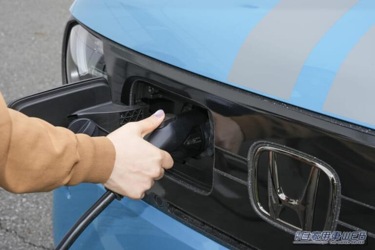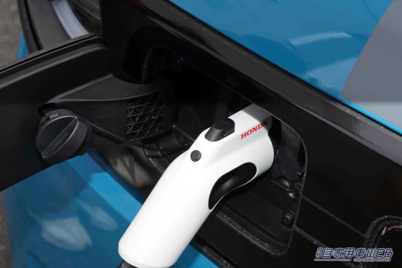 一般的なコンセントタイプの普通充電器は出力が200Vで3kW程度という製品も多いのだが、「Honda EV Charger」は200Vで6kWの高出力なので、充電時間が約半分で済むところも強みのひとつ。純正アクセサリーだから本体保証が5年間と、長期保証がつくのも安心だ。