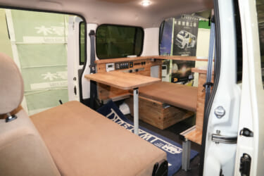 このタウンエースをベースに、アウトドアに最適化したキャンピングカー「EVOLVING STYLE」を製作したのは、エヌエーワークス(大阪府)だ。